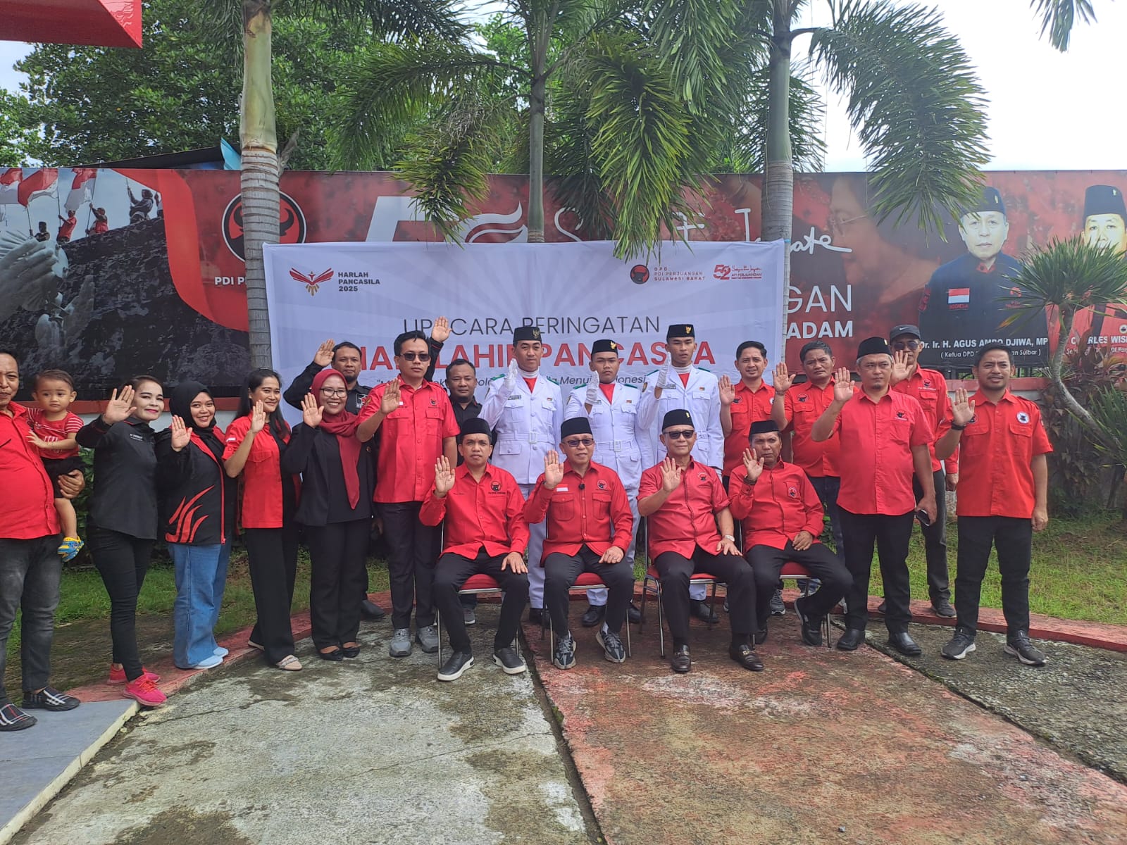 Mamuju – Mengenang jasa founding father bangsa pahlawan Proklamasi Ir Soekarno sang pencetus istilah Pancasila pada sidang Panitia Persiapan Kemerdekaan Indonesia (PPKI) pada tanggal 1 Juni 1945, hari ini, Ahad (1/6/2025), pengurus DPD PDIP Sulbar memperingati Hari Lahir Pancasila di halaman Sekretariat DPD PDIP Sulbar, Jl Musa Karim, Mamuju.