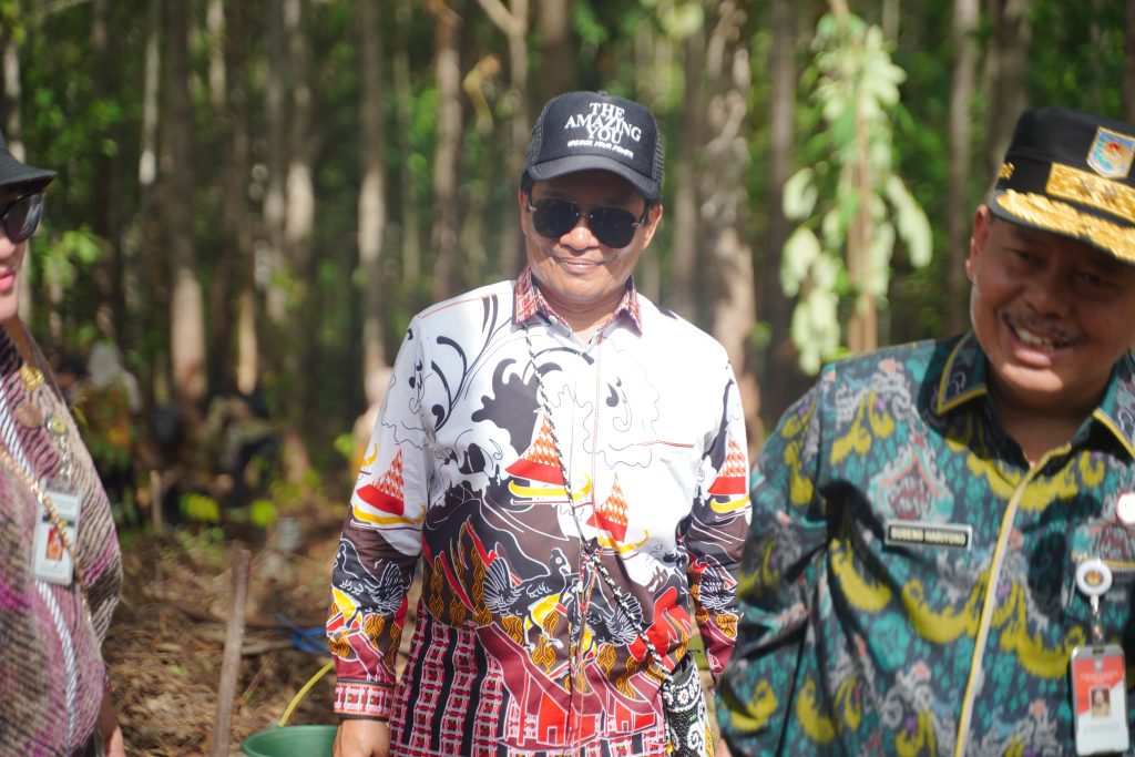 Balikpapan — Kepala BPSDM Provinsi Sulawesi Barat, Asran Masdy, bersama Kepala BPSDM Kementerian Dalam Negeri, Sugeng Hariyono, turut ambil bagian dalam kegiatan Penanaman Pohon di kawasan Ibu Kota Nusantara (IKN), Jumat pagi (14/11/2025).