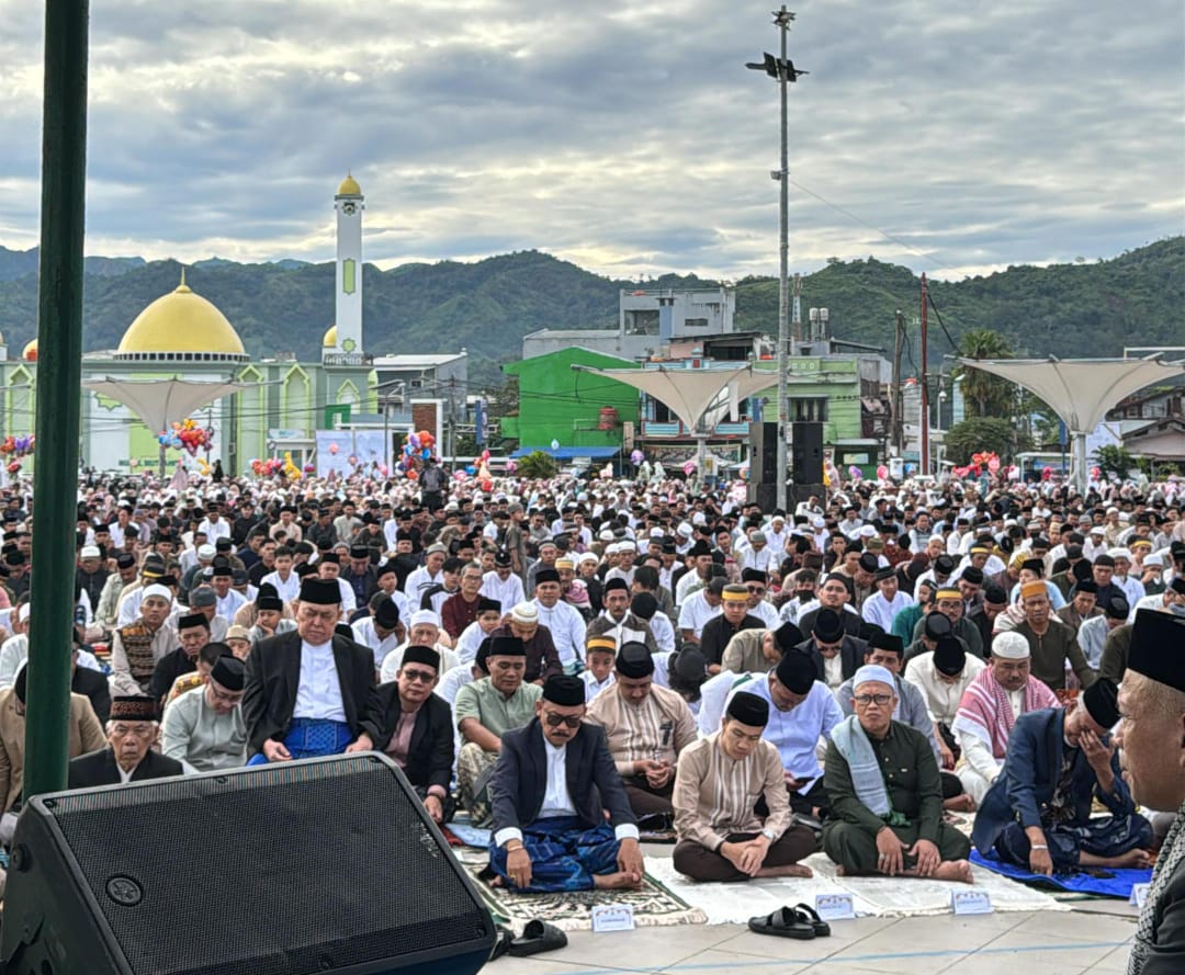 Setelah pelaksanaan salat Idulfitri, Wagub Salim S Mengga menyampaikan makna bulan suci ramadan yang telah dijalankan.